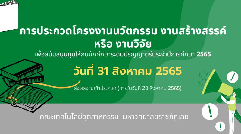 การประกวดข้อเสนอโครงงานนวัตกรรม งานสร้างสรรค์หรือวิจัย เพื่อสนับสนุนทุนให้กับนักศึกษาระดับปริญญาตรี ประจำปีการศึกษา 2565