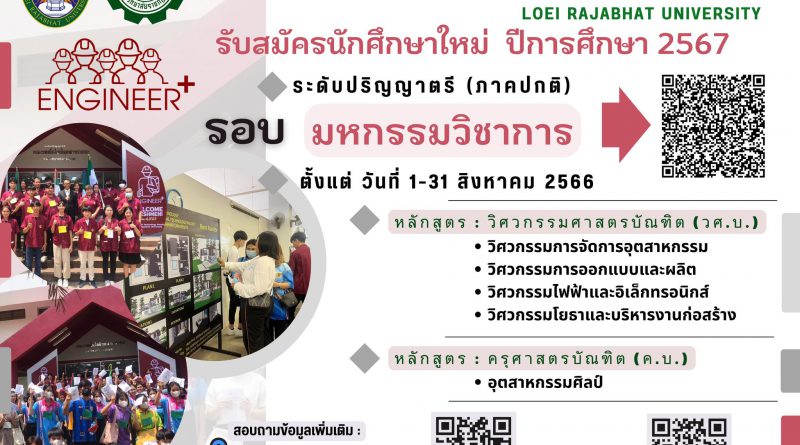 ประกาศ การรับสมัครและรับรายงานตัวนักศึกษาใหม่ ระดับปริญญาตรี ภาคปกติ (รอบมหกรรมวิชาการ) ประจำปีการศึกษา 2567 เพื่อเข้าศึกษาที่มหาวิทยาลัยราชภัฏเลย จังหวัดเลย และ ศูนย์การศึกษามหาวิทยาลัยราชภัฏเลย จังหวัดขอนแก่น