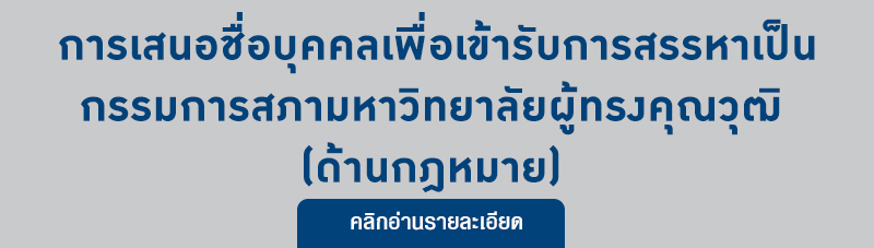 การเสนอชื่อบุคคลเพื่อเข้ารับการสรรหาเป็นกรรมการสภามหาวิทยาลัยผู้ทรงคุณวุฒิ (ด้านกฎหมาย)