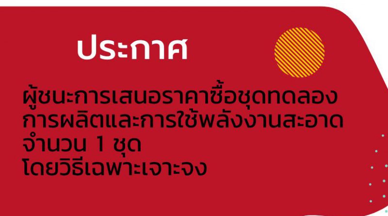ประกาศผู้ชนะการเสนอราคาซื้อชุดทดลองการผลิตและการใช้พลังงานสะอาด จำนวน 1 ชุด โดยวิธีเฉพาะเจาะจง
