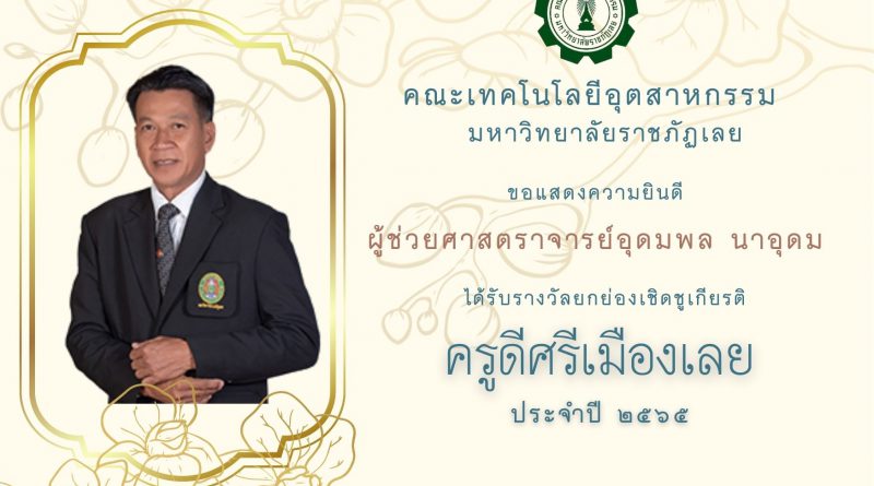 ผู้ช่วยศาสตราจารย์อุดมพล นาอุดม ได้รับรางวัล ครูดีศรีเมืองเลย ประจำปี 2565