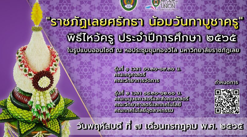 วันที่ 7 กรกฎาคม 2565 ผู้บริหาร คณาจารย์ และนักศึกษา เข้าร่วมกิจกรรม “ราชภัฎเลยศรัทธา น้อมวันทาบูชาครู”