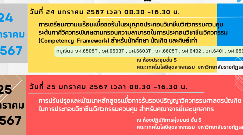 อบรมเชิงปฏิบัติเพื่อขอรับใบอนุญาตประกอบวิชาชีพวิศกรรมควบคุมระดับภาคีวิศวกรพิเศษ และ แนวทางพัฒนาหลักสูตรเพื่อการรับรองปริญญาวิศวกรรมศาสตรบัณฑิต