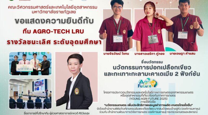ทีม AGRO-TECH LRU คว้ารางวัลชนะเลิศ ระดับอุดมศึกษา นวัตกรรมการปอกเปลือกเขียวและกะเทาะกะลามะคาเดเมีย 2 ฟังก์ชัน