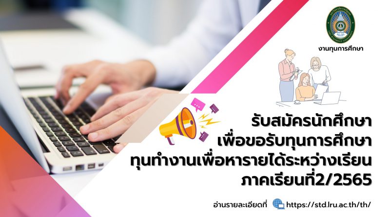 ข่าวทุนการศึกษา 01/12/2021 ภัทราภรณ์ เขียวทองสี รับสมัครนักศึกษาเพื่อขอรับทุนการศึกษา ประเภททุนทำงานเพื่อหารายได้ระหว่างเรียน ภาคเรียนที่ 2 ประจำป Read More